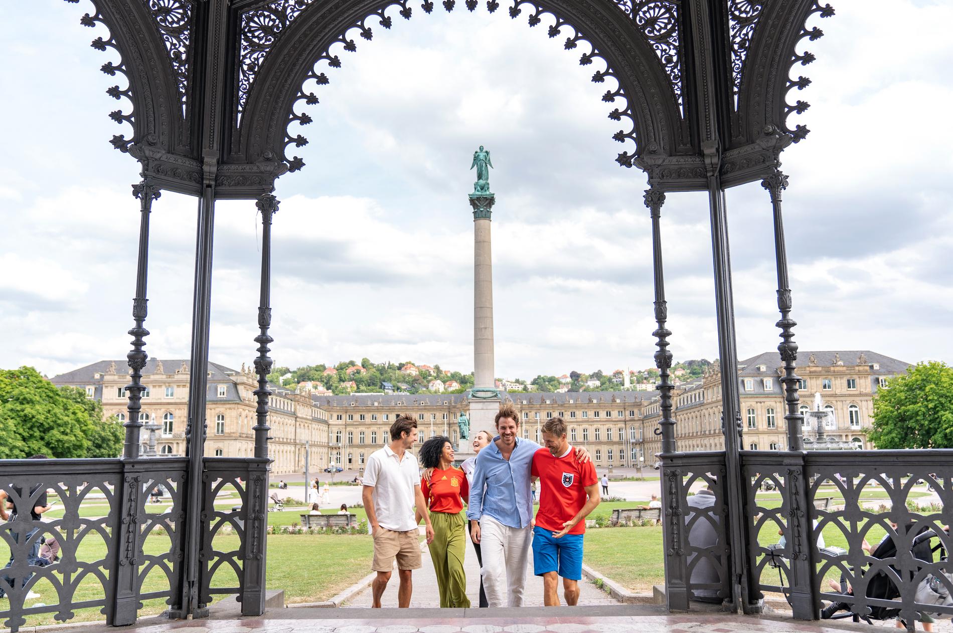 Der Schlossplatz ist das Herz Stuttgarts. Hier ist immer etwas los: Viele Events wie der Weihnachtsmarkt oder die jazz open finden hier statt, und im Sommer sitzen hier die Menschen auf dem Rasen, essen ein Eis oder entspannen nach einer Shoppingtour. Auch bei der UEFA EURO 2024TM verwandelt sich der Schlossplatz ins Zentrum der Fußballbegeisterung: eine riesige Public Viewing-Leinwand vor der historischen Kulisse Stuttgarts und ganz viel Programm rund um den Fußball warten auf euch! Freut euch auf Momente der Leidenschaft, der Spannung und des Jubels, zusammen mit internationalen Fans!