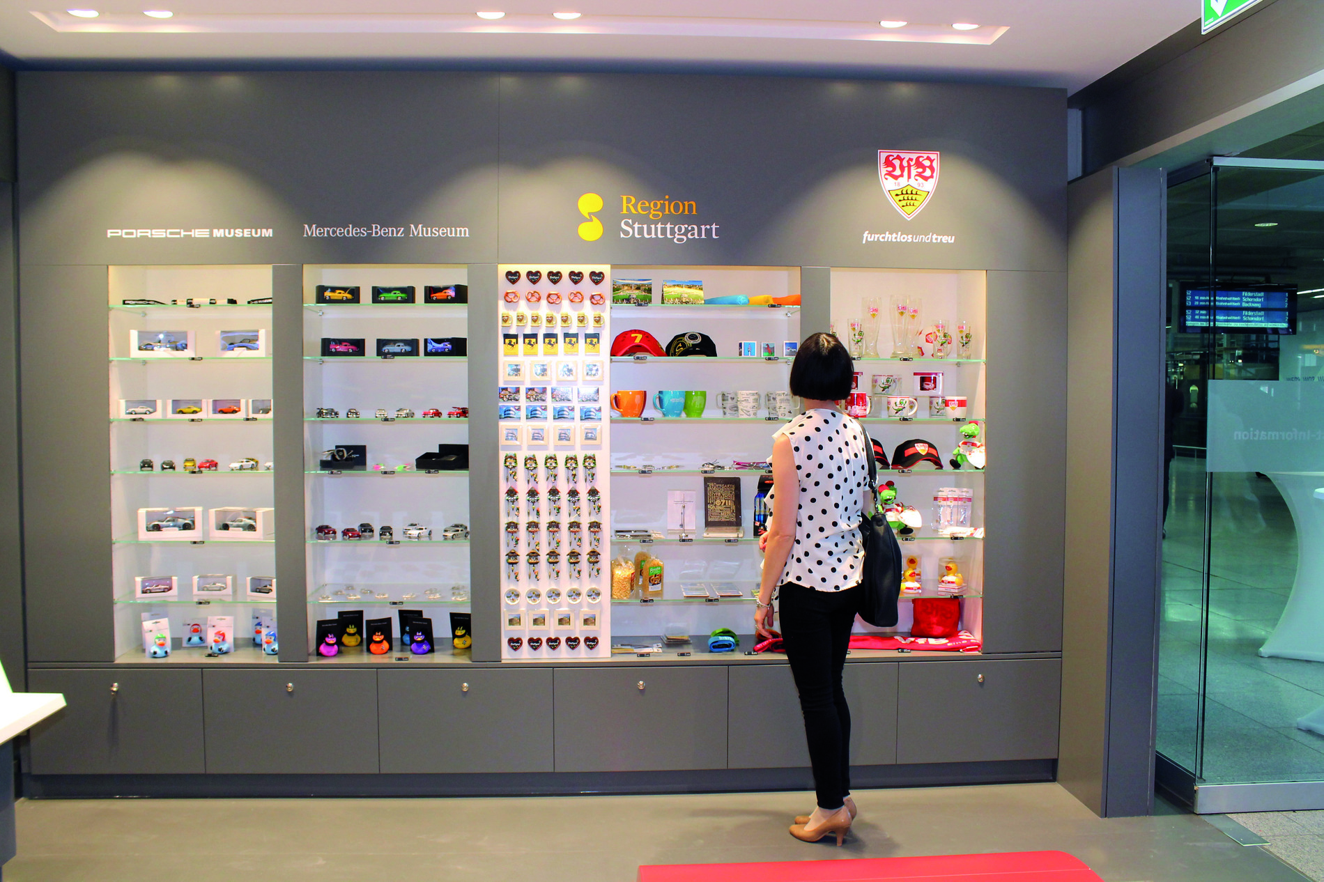 Ihr habt Fragen, sucht nach einem Mitbringsel oder braucht einfach nur einen Stadtplan? In den Touristeninformationen in der Nähe vom Hauptbahnhof und am Flughafen wird euch geholfen! Rund um das Fußballturnier findet ihr hier natürlich auch das ein oder andere Fan-Goodie. Stöbert durch das Angebot von Souvenirs aus Stuttgart und der Region – egal ob Postkarte, Modellauto oder regionaler Wein.
