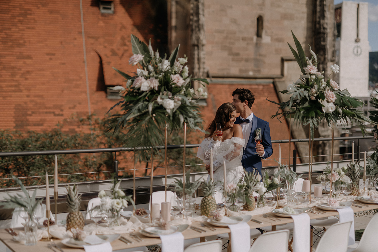 Etwas ganz Besonderes ist natürlich auch eine Hochzeitsfeier mit einem spektakulären Ausblick. Hoch über den Dächern der Stadt oder sogar noch höher auf einem Hügel der schwäbischen Alb. Wer ersteres bevorzugt ist bei „OutOfOffice“ genau richtig. Die Dachterrasse im 5. Stock direkt neben der Stiftskirche ist ein absolutes Highlight in der Altstadt Stuttgarts. Auch das Skyloft Stuttgart und das F&K Studio bieten eine aussichtsreiche Location in der Stadtmitte. Sollte euch das nicht hoch genug sein, bietet sich auch der Fernsehturm Stuttgart als Hochzeitsort an. Eine Trauung und Feier bei über 100 Metern kann wortwörtlich wenig übertreffen. Wenn ihr allerdings eher die Aussicht auf die Hügel und Berge der schwäbischen Alb bevorzugt, dann wäre eine Hochzeit in der Burg Hohenneuffen perfekt für euch!