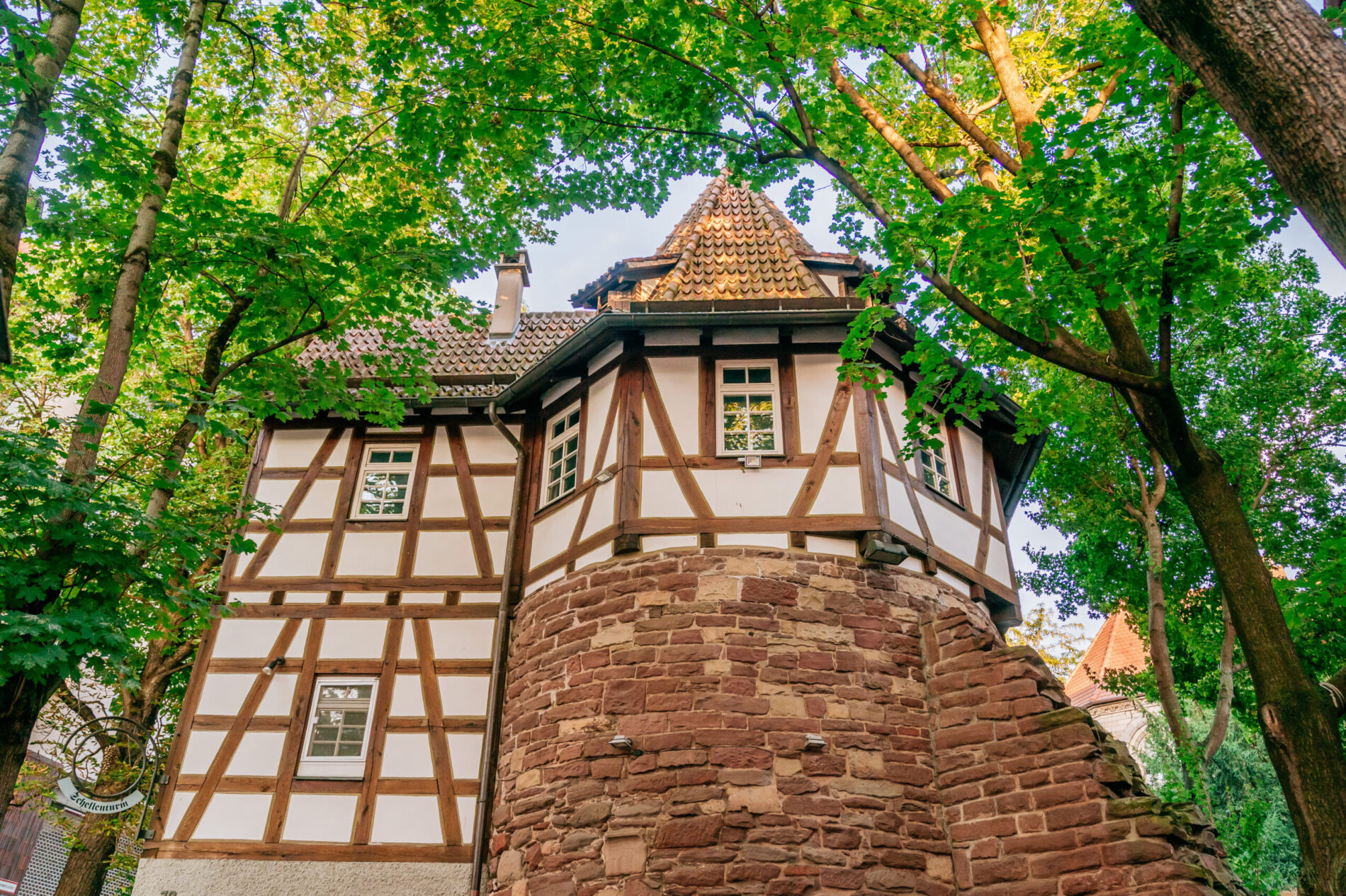 © Stuttgart-Marketing GmbH, Thomas NiedermüllerVom Hinterhof-Märchen geht es direkt zum nächsten: dem Schellenturm. Er ist der letzte Turm der Stadtmauer, die das Bohnenviertel erst ausschloss, dann umschloss und die zuletzt ganz abgerissen wurde. Heute ist ein nettes kleines Lokal im Turm zu finden. Wie aufregend muss das wohl sein, im letzten Turm der Stadtmauer zu speisen? Wenn man auf der Tour aufmerksam durch das Bohnenviertel spaziert, findet man immer wieder kleine Reste der Stadtmauer. Ein kleiner Spielplatz im Hof eines Kindergartens besteht zum Teil sogar aus dessen Steinen.