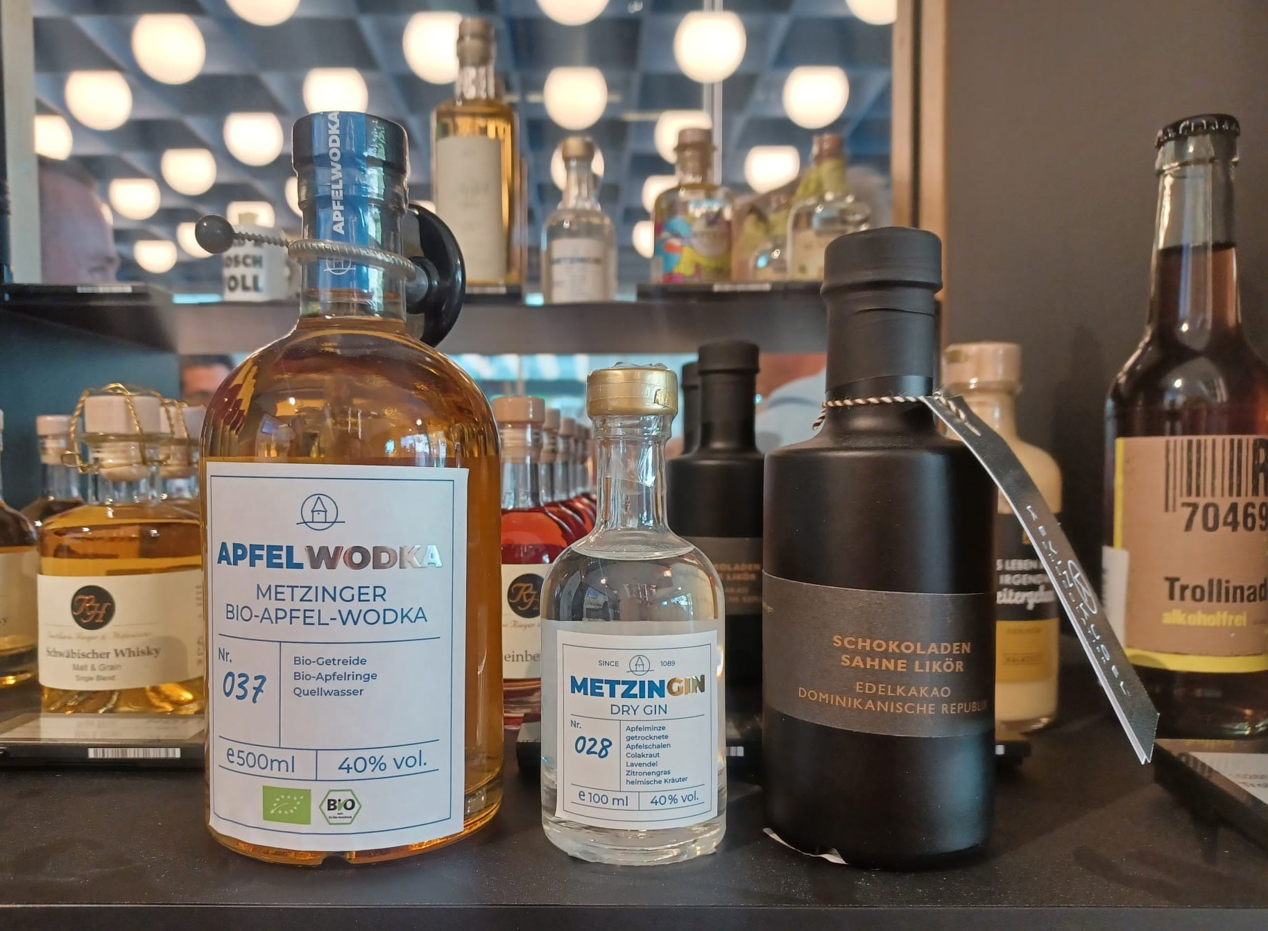Ob Gin oder Bio-Apfel-Wodka: Hier werden ausschließlich regionale Zutaten wie Apfelminze, Lavendel oder Streuobstäpfel verarbeitet. Das Ergebnis sind einzigartige Spirituosen aus heimischen Rohstoffen. Preis Stand 18.09.25: Wodka 29,50€, Gin 11,20€