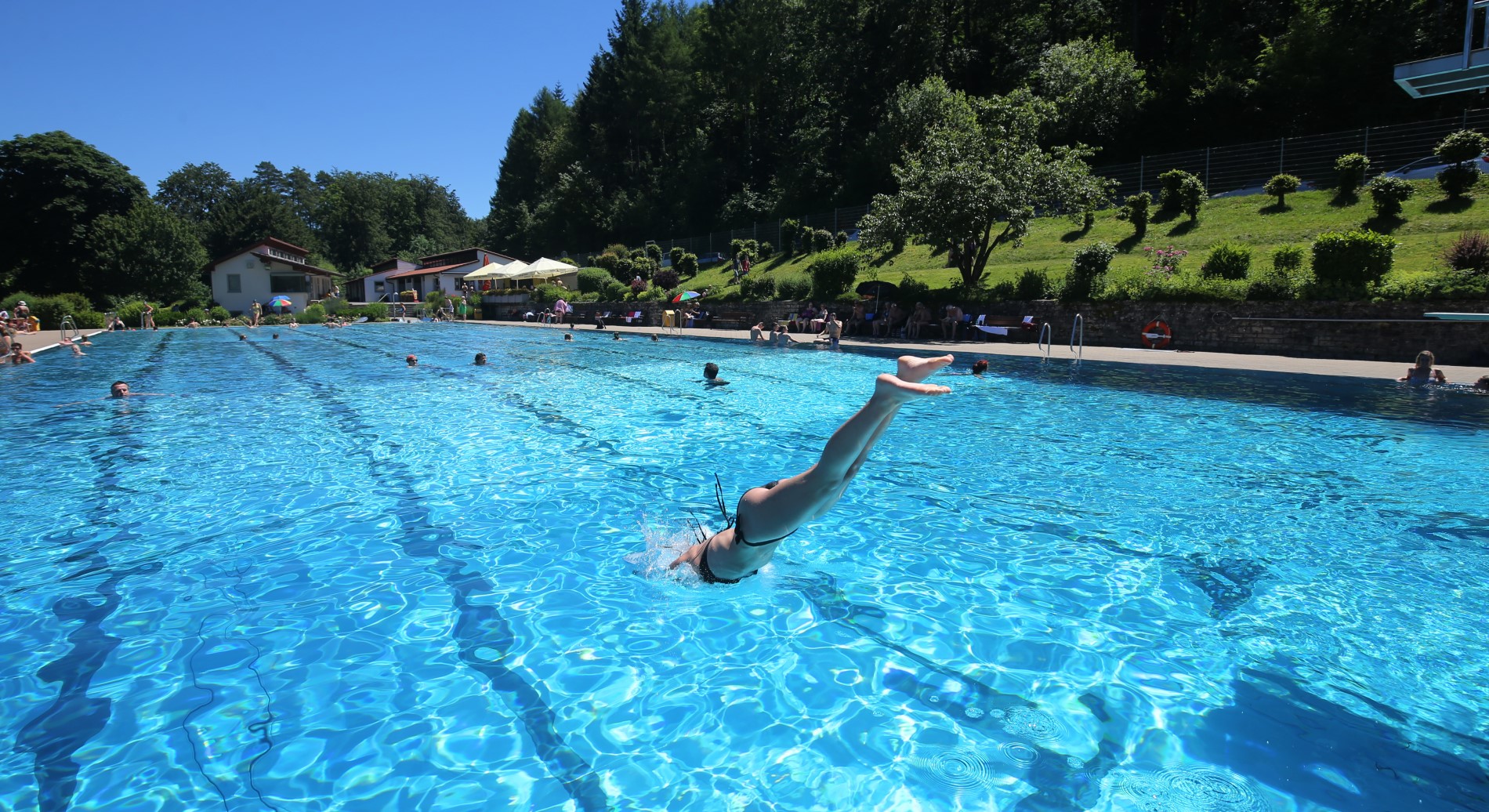 Nach einem heißen und anstrengenden Tag kann man wunderbar im Höhenfreibad eine Abkühlung suchen. Das Bad Uracher Höhenfreibad liegt auf einem sonnigen Plateau am Tiergartenberg. Mit seiner Lage unterhalb der Burgruine Hohenurach und oberhalb der Stadt mit einem weiten Blick ins Ermstal, gehört es zu den schönsten Freibädern der Schwäbischen Alb.