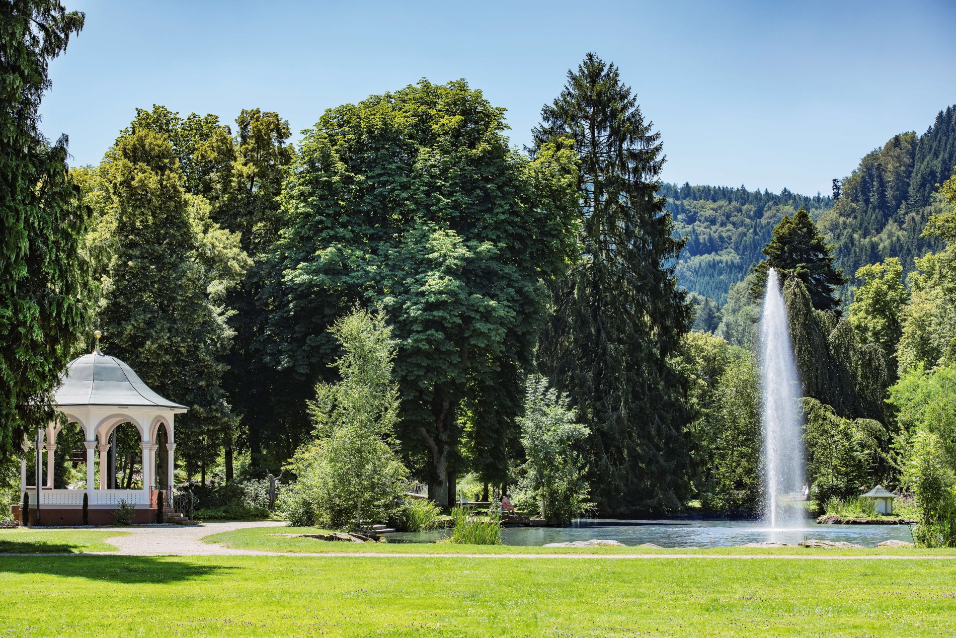 © Locher Fotodesign ManufakturAber nicht nur das Schwarzwälder Quellwasser sorgt in Bad Liebenzell für Entspannung. Der große Kurpark am Ufer der Nagold lädt dazu ein, die Seele baumeln zu lassen. Das Plätschern des Flusses wird abends und nachts durch die bezaubernden bunten Beleuchtungen an den Bäumen ergänzt. Die Gebäude erstrahlen zusätzlich in blauem Licht. Der Planetenweg bietet außerdem einen fantastischen Einblick in unser Sonnensystem und ist auf der sonnenzugewandten Seite ebenfalls beleuchtet. Am nördlichen Rand der Parkanlage steht die Trinkhalle. Hier wird frisches Liebenzeller Quellwasser zum Trinken angeboten und die Touristeninformation ist hier zu finden. Ihr könnt hier tolle Souvenirs und fantastische Produkte aus dem umliegenden Schwarzwald erwerben. Zum Kurpark gehört auch eine Minigolf-Anlage, die für großen Spaß bei Groß und Klein sorgt.