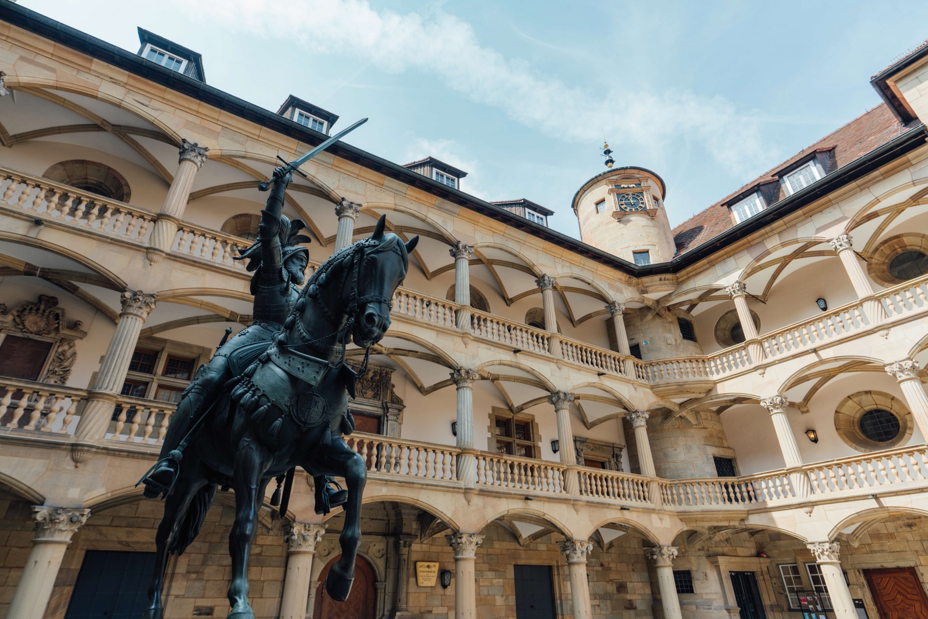 Ziel in der Innenstadt ist der Innenhof des Alten Schlosses (Landesmuseum) – eines der ältesten Gebäude und der „Ursprung“ von Stuttgart. Der von Arkaden gesäumte Innenhof erinnert an Italien, und bietet sich zudem noch als ein tolles Fotomotiv an.