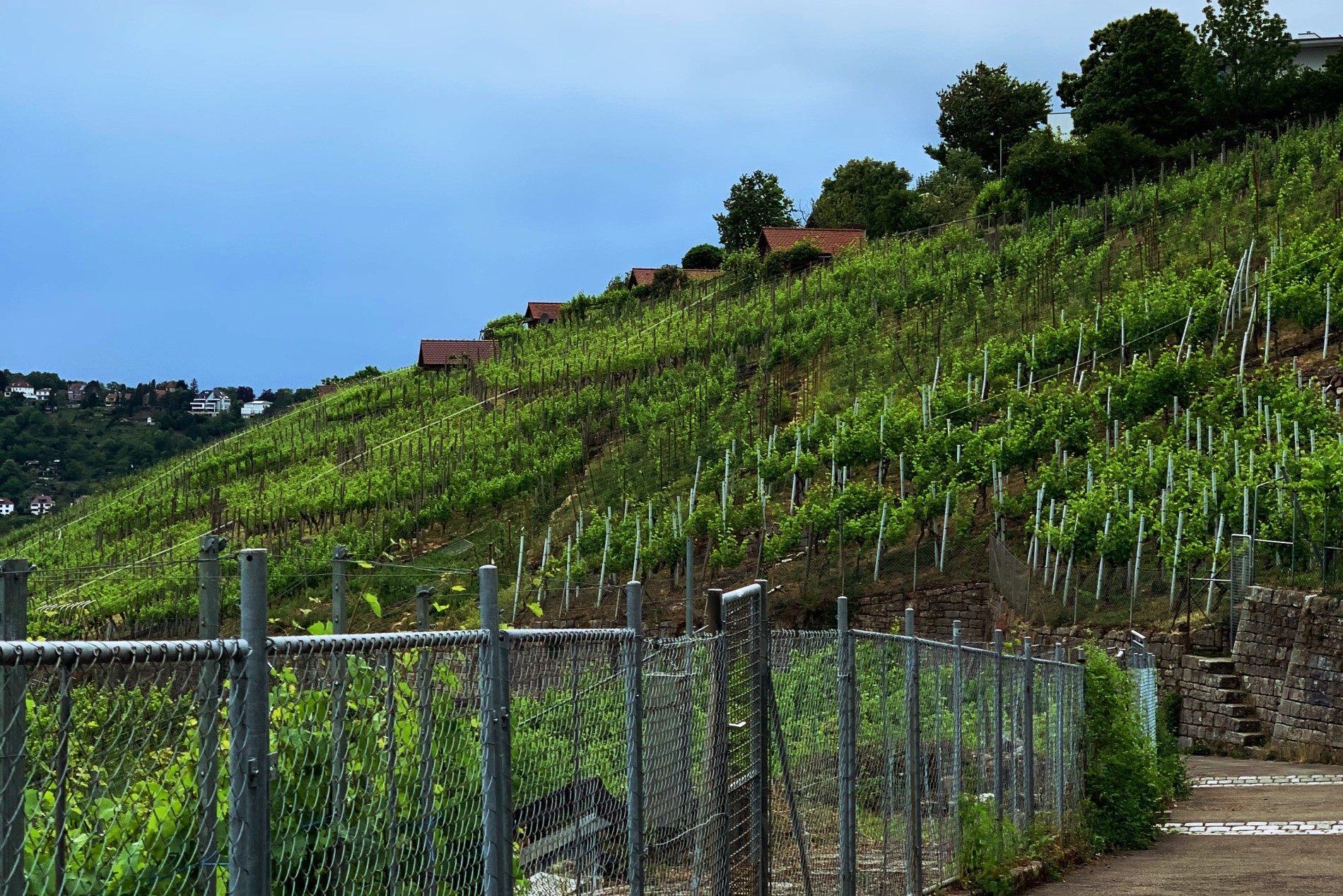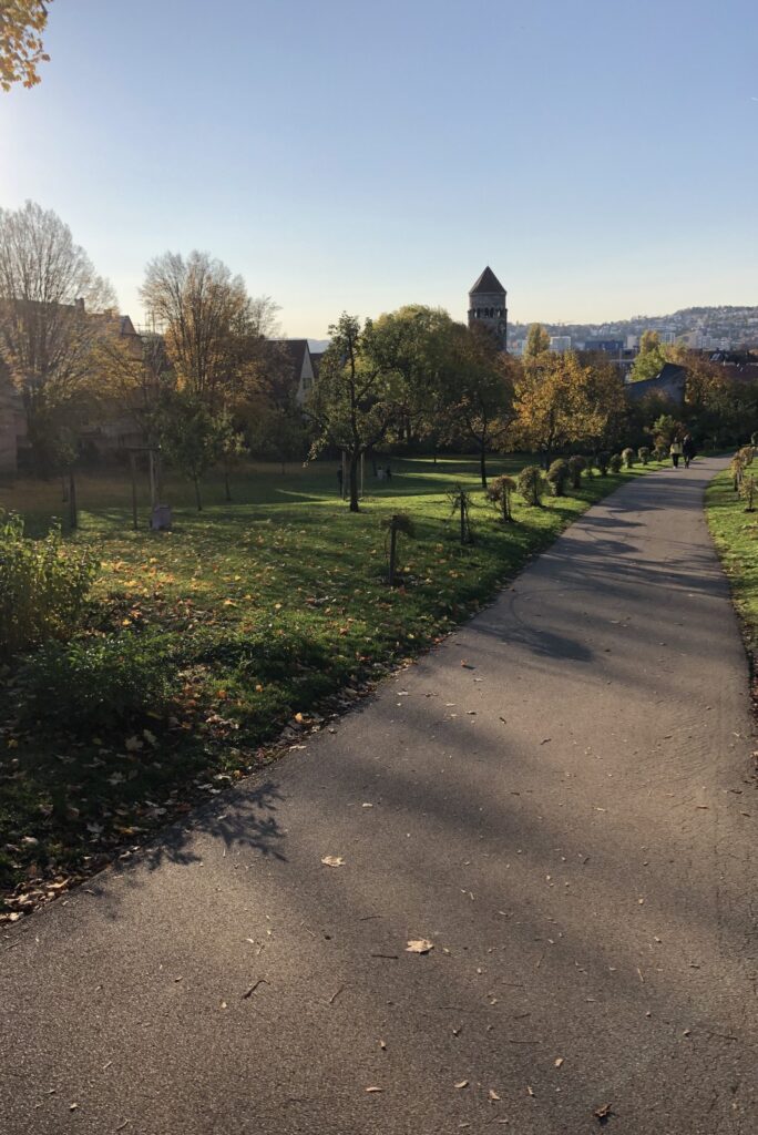 Den Absprung solltet ihr nicht verpassen –> an der Haltestelle „Haigst“. Dort direkt gegenüber ist der Santiago-de-Chile Platz. Auch von hier gibt es eine super tolle Aussicht auf die Innenstadt. Zudem seht ihr hier am Beispiel der Alten Weinsteige (Straße) auch ziemlich gut was Stuttgart ausmacht. Überall geht es bergauf, und das teilweise nicht zu knapp. Dafür wird man aber so gut wie überall mit schönen Ausblicken belohnt. Und wie der Name schon sagt, gibt es entlang der Neuen Weinsteige auch einen der innerstädtischen Weinberge zu sehen. Stuttgart ist ja nicht umsonst die Stadt zwischen Wald und Reben.