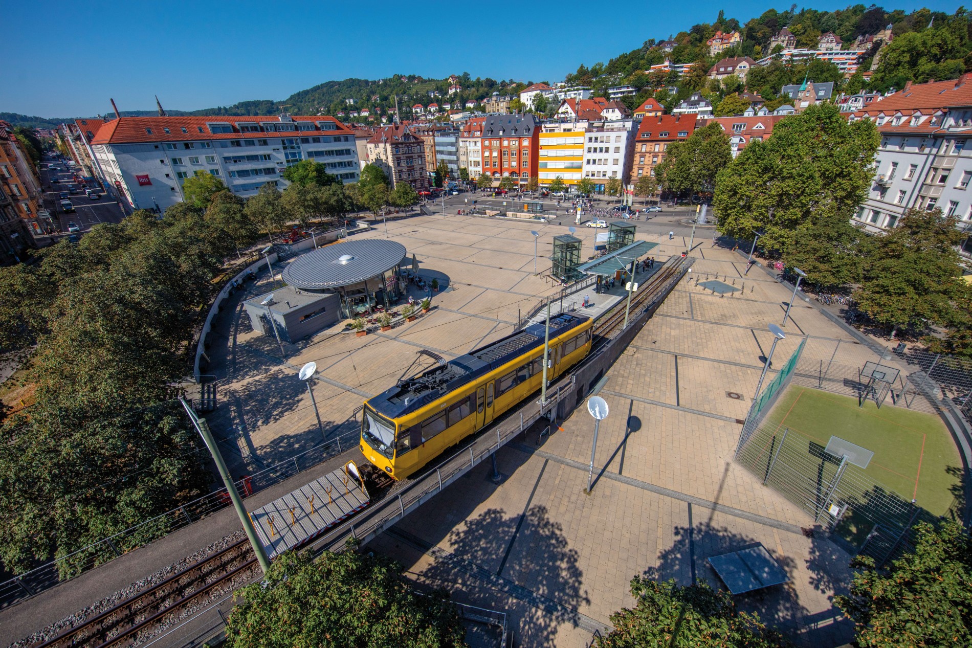 Wenn ihr, wie ich, Städte gerne zu Fuß erkundet um das Flair aufzusaugen, und mal hier und mal dort einen Blick hineinwerft, dann geht es nun zu Fuß weiter zum Marienplatz. Hier kommt ihr z.B. auch an einer der Stuttgarter Brauereien vorbei, der Dinkelacker Brauerei in der Tübingerstraße. Am Marienplatz angekommen, ist es nun Zeit für ein leckeres Eis. Setzt euch hier einfach eine Weile hin und taucht ein ins echte Stuttgart-Leben. Am Marienplatz treffen sich die Stuttgarter oft zum Quatschen, und die Stimmung ist sehr entspannt. Bevor ihr hier aber komplett versackt, steigt doch in die Zacke (Zahnradbahn) und fahrt bergauf. Für die Fahrt mit der Zacke benötigt ihr ein normales Ticket (oder habt es eh schon) für den öffentlichen Nahverkehr. Einsteigen und Ausblick genießen, daher Plätze in Fahrtrichtung links aussuchen.