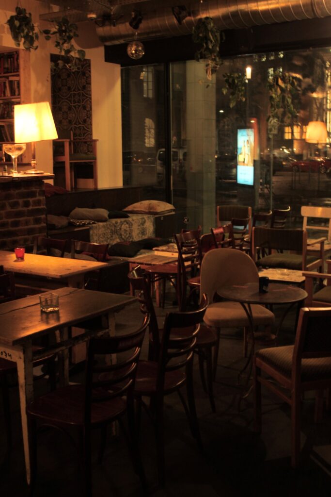 Das Walther ist bereits schon tagsüber ein idealer Anlaufpunkt für ein Frühstück oder einen Nachmittagssnack. Abends verwandelt sich das Café in eine Bar und es werden Weine, Champagner und weitere Drinks angeboten. „Start with coffee, end with wine“ ist einer der Leitsprüche des Walthers, der diesen Wandel gut beschreibt. Durch die dunklen Wände und die schwache Beleuchtung wird ein wohliges Umfeld geschaffen. Auch bei der Musik enttäuscht die Bar nicht und verbreitet so für mich das perfekte After-Work-Party-Gefühl. Das Walther liegt in der Calwer Straße in einem Altbau und gehört zu einem historischen Stadtbezirk Stuttgarts.
