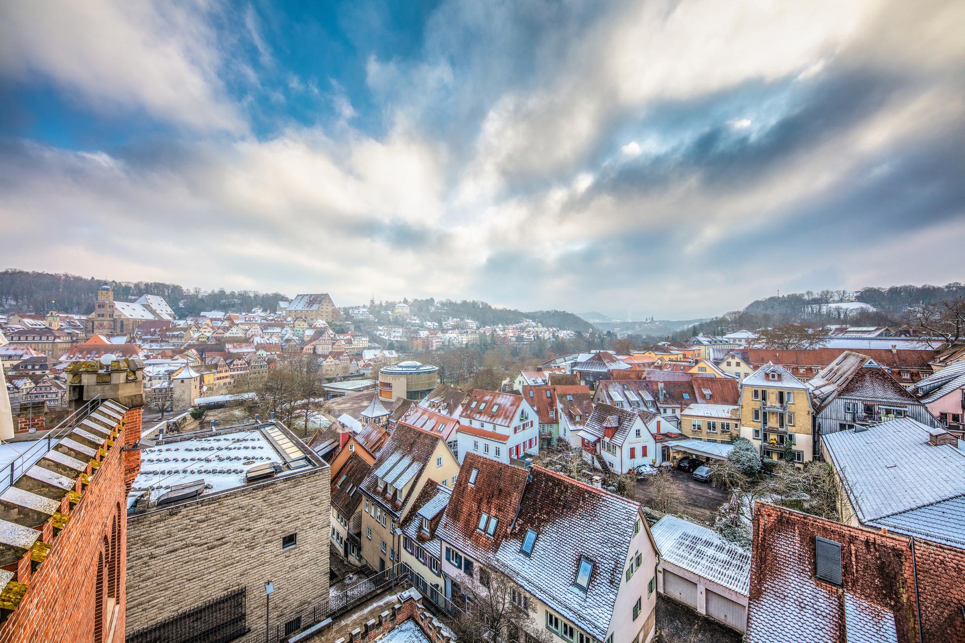 In Schwäbisch Hall startet ihr euren Tag mit einem Besuch in der Kunsthalle Würth. Die beeindruckenden Wechselausstellungen moderner und klassischer Kunst machen das Museum zu einem echten Highlight. Nach dem Museumsbesuch könnt ihr bei einem Spaziergang durch die historische Altstadt wieder frische Luft schnappen. Der Marktplatz mit seinen Fachwerkhäusern und der imposanten Kirche St. Michael ist auch in der Winterzeit ein malerischer Anblick. Verpasst nicht, die Stufen zur Kirche zu erklimmen – von hier habt ihr einen tollen Blick über die Stadt.