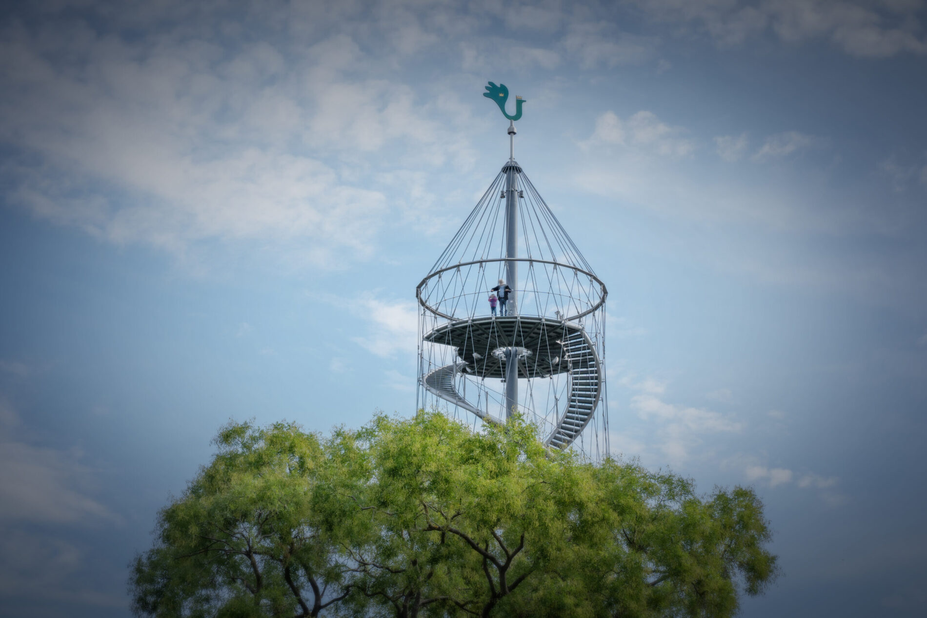 © SMG, Martina DenkerKILLESBERGTURM So zierlich und filigran der Turm mit seinen Stahlseilen und luftdurchlässigen Treppen wirken mag – er ist stark genug, seine vielen Besucher zu tragen! Und sie sogar sachte hin und her zu wiegen, wenn sie auf der oberen Plattform den Ausblick genießen… Von hier überblickt ihr den gesamten Killesbergpark, eine der schönsten Parkanlagen Stuttgarts. 360 Grad-Panoramasicht laden zum Verweilen und Genießen ein. Zum Killesbergturm