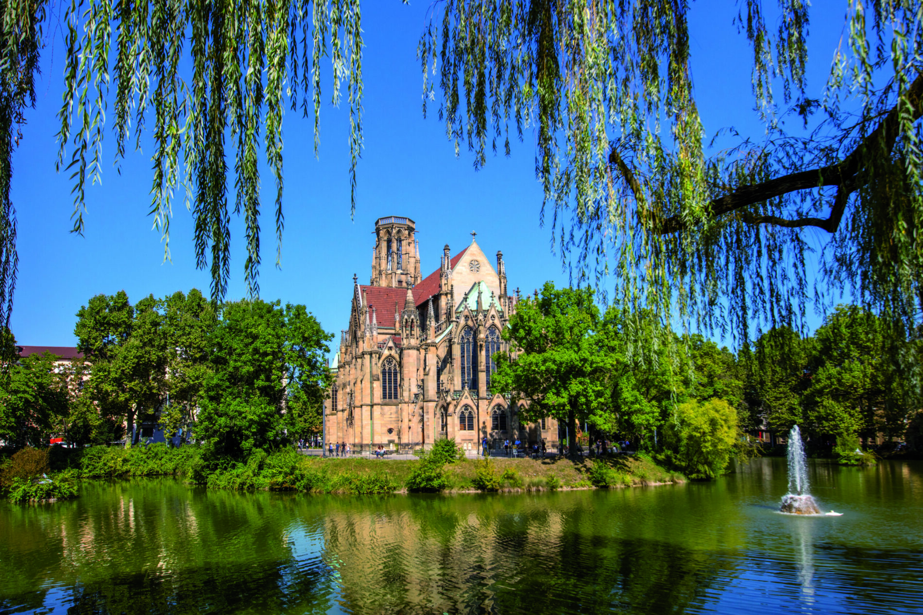 © SMG, Achim MendeFEUERSEE Die Oase mitten in der Stadt! Am Feuersee erwartet euch ein wunderschöner Blick auf die Johanneskirche – Urlaubsfeeling garantiert. Zudem spenden die Bäume Schatten und bei etwas Wind sorgt die Fontäne für eine angenehme Abkühlung. Im faszinierend grünen See schwimmen übrigens einige Schildkröten umher – findet ihr sie?