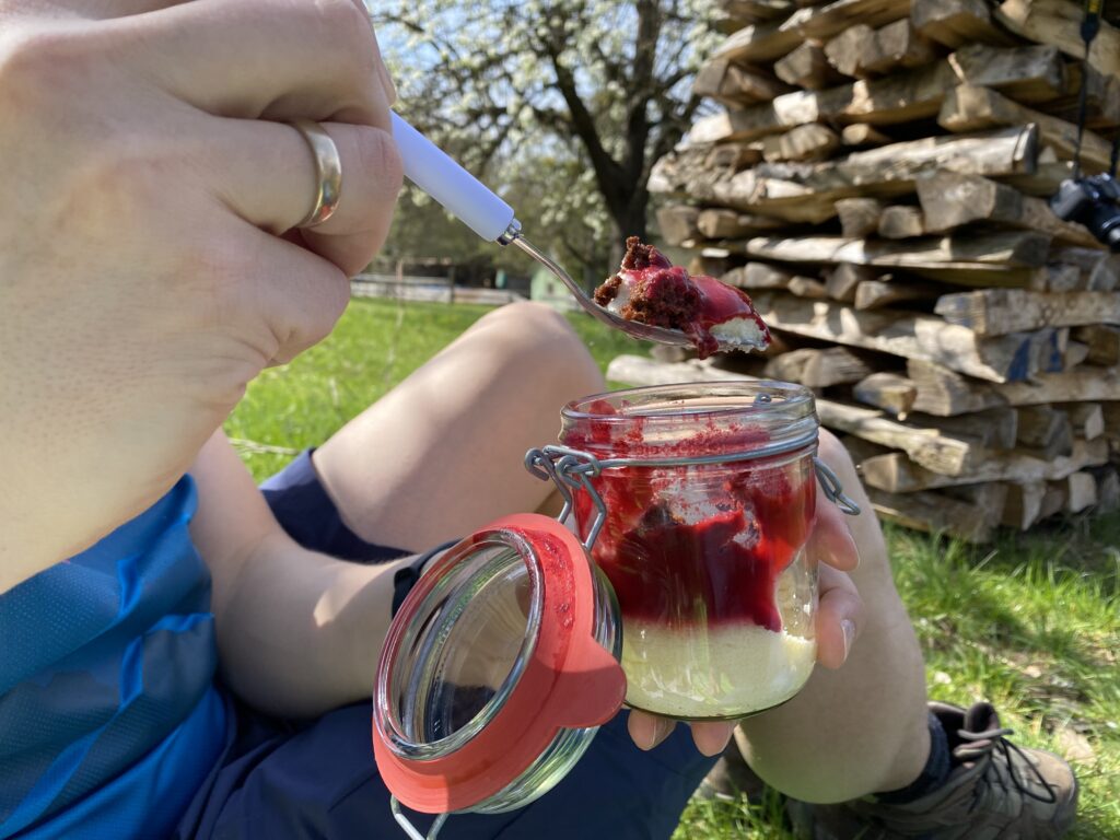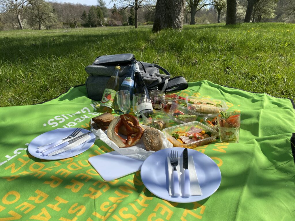 © Stadt WaldenbuchIm isolierten Picknick-Rucksack befindet sich Geschirr, Besteck und Gläser. Das Essen ist gut verpackt und die Getränke sind schön kühl. Unser Highlight ist der Frühlingssalat mit Serranoschinken, aber auch die Entenbrust an Mango-Chili-Salat lässt unser kulinarisches Herz höherschlagen. Die Köstlichkeiten sind mediterran angehaucht und sehr leicht, beim Maultaschensalat freut sich natürlich unser Schwabenherz. Begeistert sind wir auch von den beiden Desserts, die wir im Nu ausgelöffelt haben.
